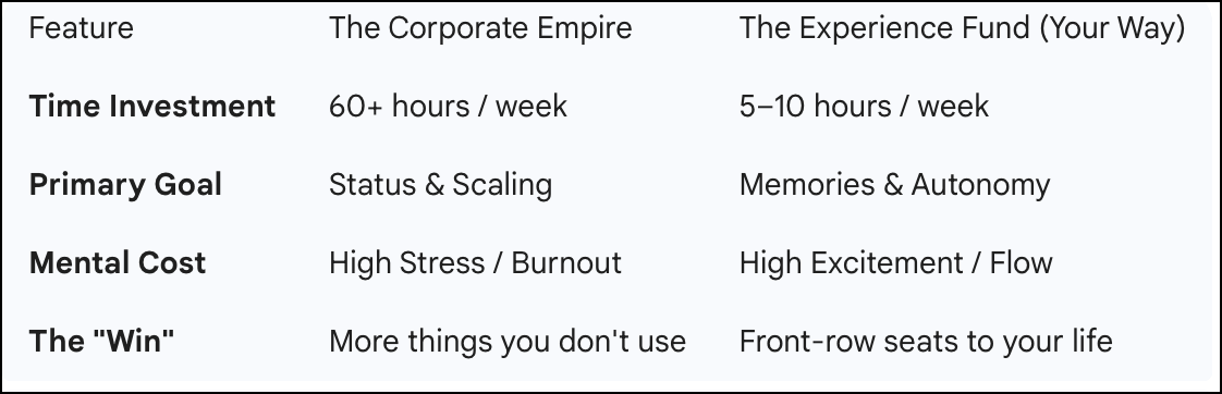 While the hustle culture gurus tell you to grind 60 hours a week to build the next big thing, I’m spending 5–10 hours a week building tiny digital assets to buy memories.
